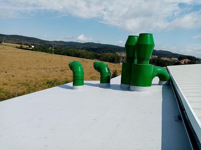 Hydroizolační fólie ve skladbě střešního pláště na tepelné izolaci z minerálních vláken nebo na skladbě EPS polystyren + podkladní separace ze sklovlákna VLIES, vyhovuje zkoušce pro použití do požárně nebezpečného.