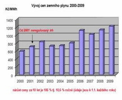 U elektrické energie je to od roku 2000 průměrné zvýšení cen o cca 8 % a u zemního plynu „ šplhá „ průměrné zdražování k 11 % ročně.