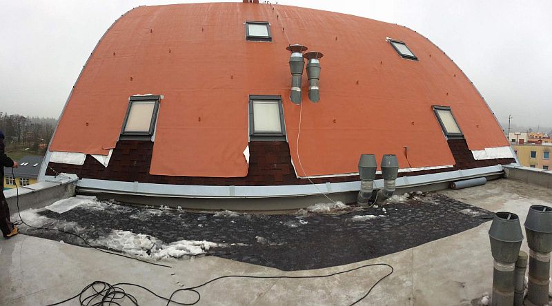 Ukázky realizace staveb vodotěsné izolace plochých střech.